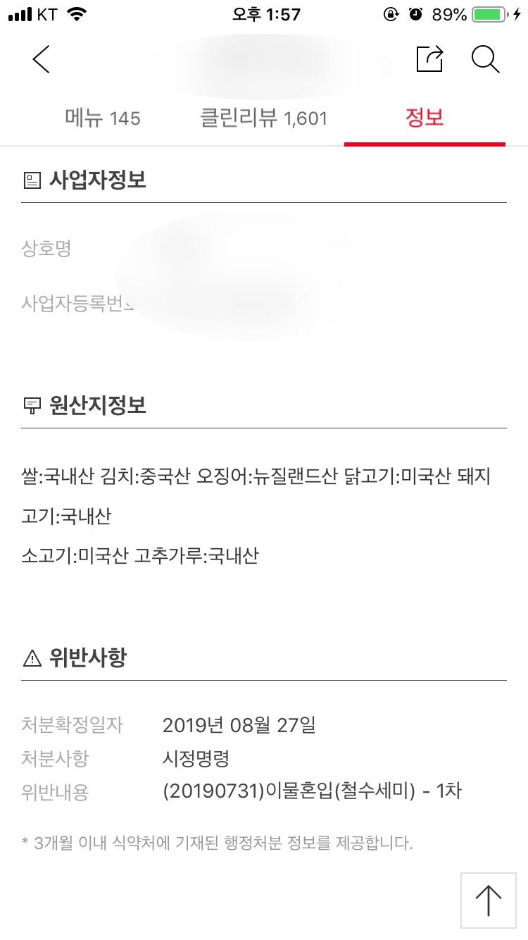 이물혼입정도는 시정명령정도네요