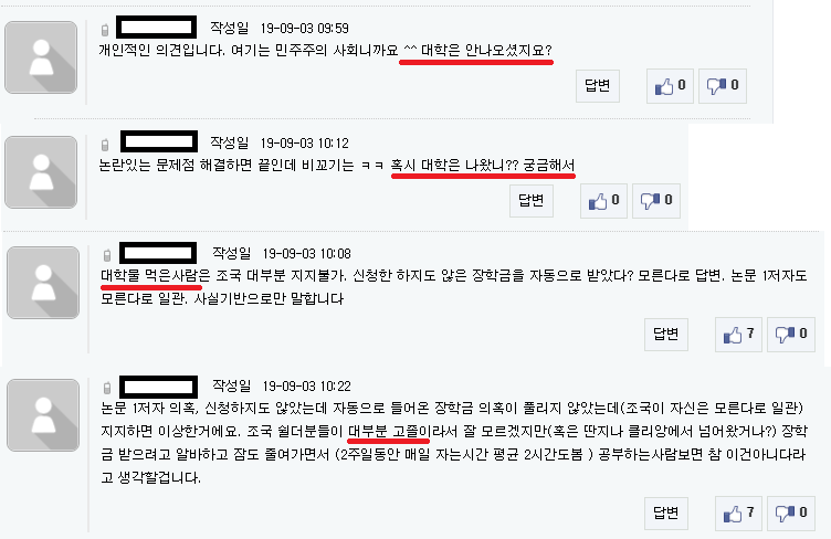 학력에 컴플렉스 있으신 분이신가... 진짜 좋은학교 나오고 그 학력수준에 맞는 인간됨을 갖춘 사람이라면 저런 유치원스러운 생각은 하지 않을텐데요. | ||