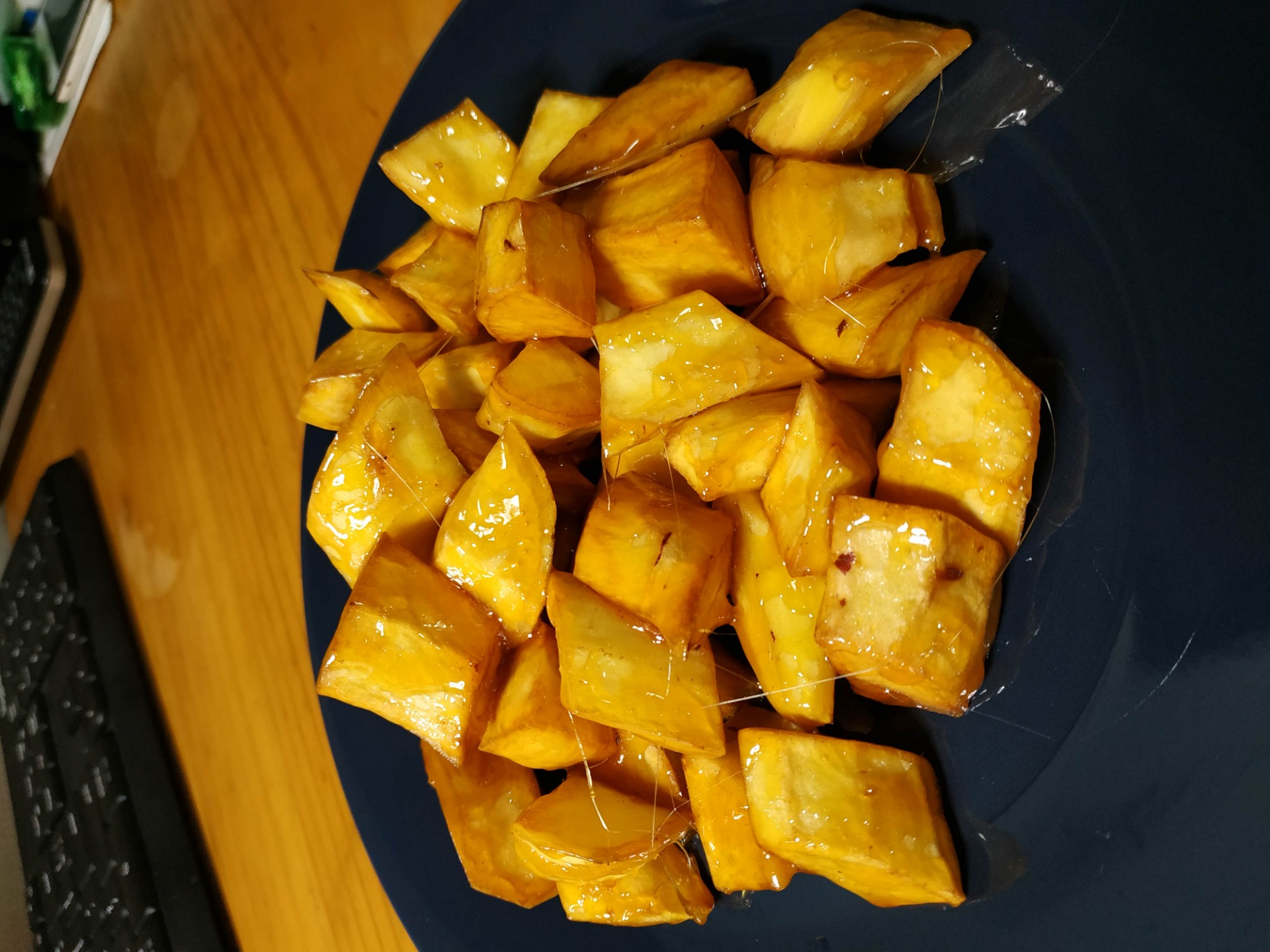 1. 고구마를 손질(껍질 벗기고 적당한 크기로 컷팅)해서 기름에 튀겨냅니다.(연한 갈색으로)
