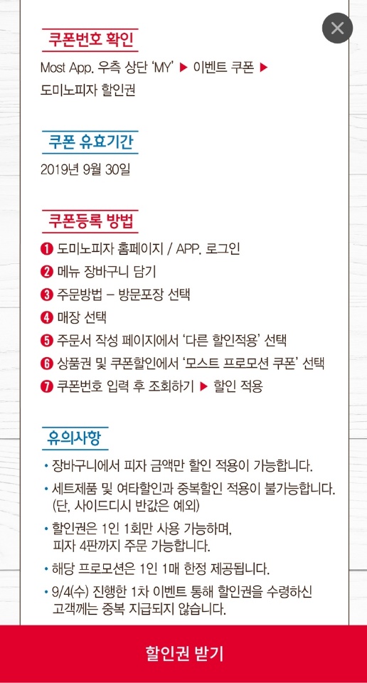 모스트앱 도미노피자 45% 할인권 발급 받으세요.^^