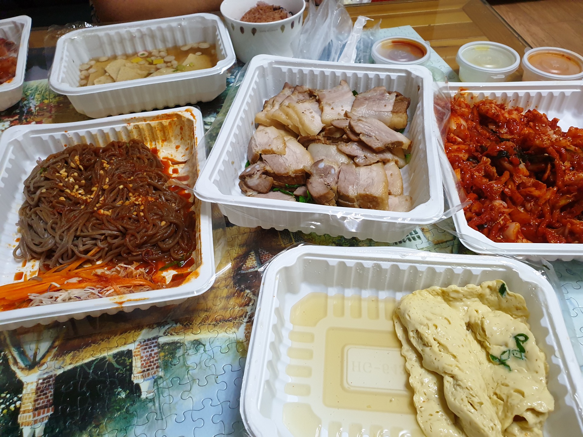 무엇보다 맛이 너무 없어보입니다. 보쌈 데코도 엉망이고 계란찜보니까 식욕감퇴네요.