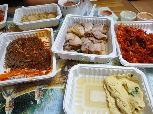 제가 ㅋㅋㅋㅋ 서비스만 오고 추가주문 막국수가 안온줄 알고 전화했더니 합친거라네요;;;; 저게 2.5인분은 되는 양이라고 말도 안되는 소리를 하는데 저기서 자기네.양이 저렇다는데 할말이 없어서 포기했습니다.