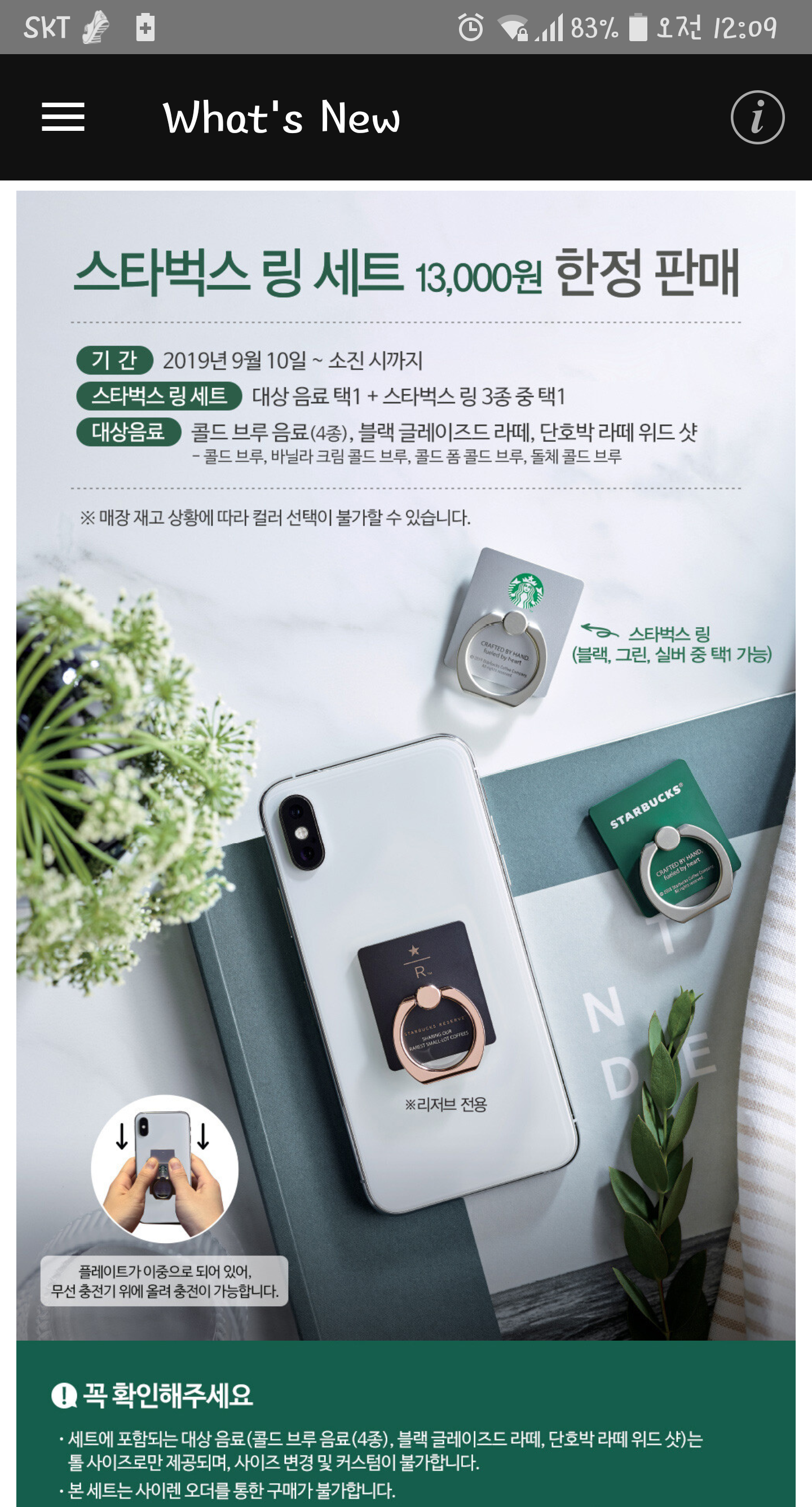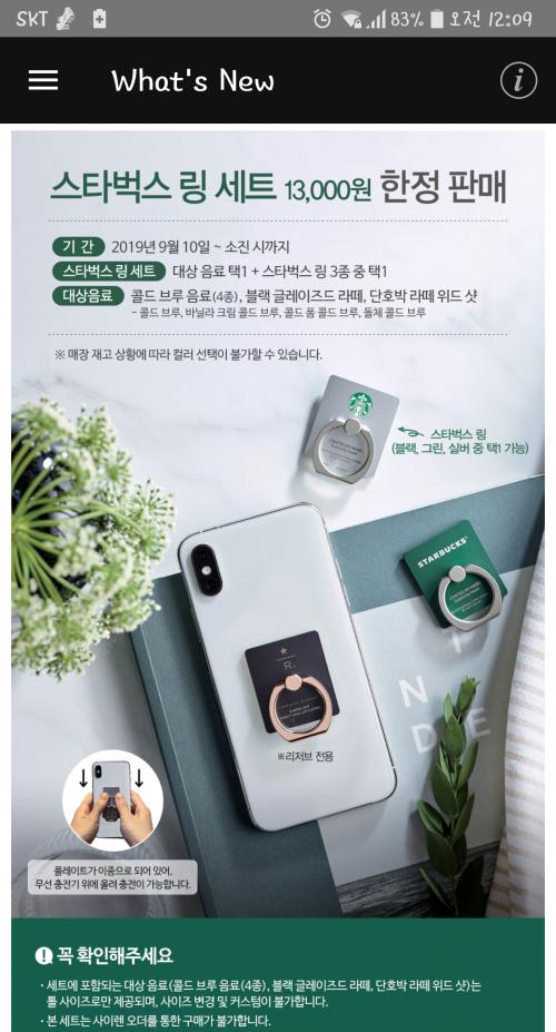 지정음료 톨사이즈 1잔+링 해서 13000원