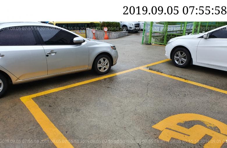 경차들이 좁은공간에 장애인주차 빗금을 물고 주차하길래 신고해봤습니다