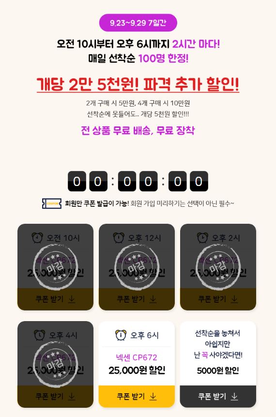 2시간마다 한번씩 할인쿠폰 뿌리네요