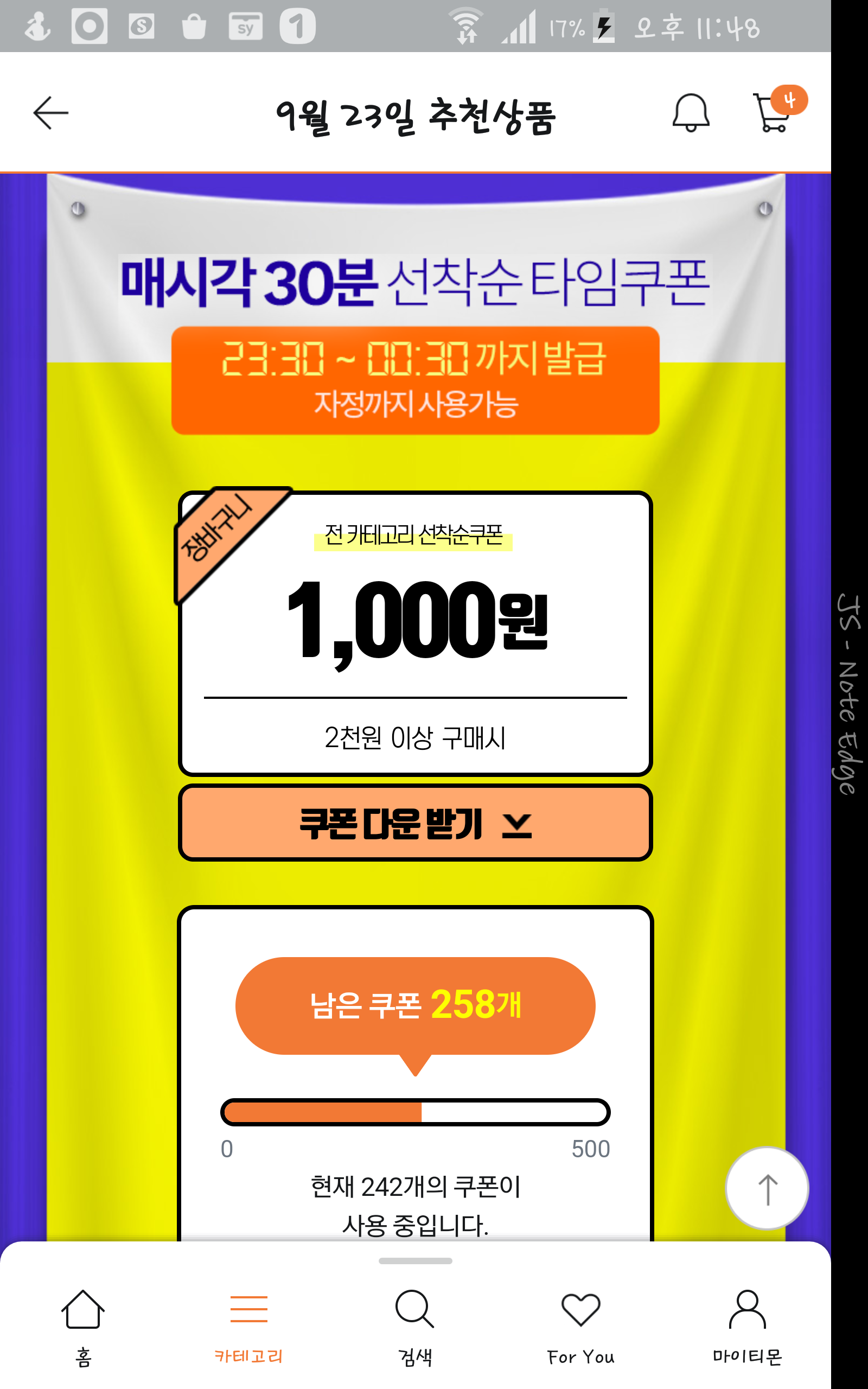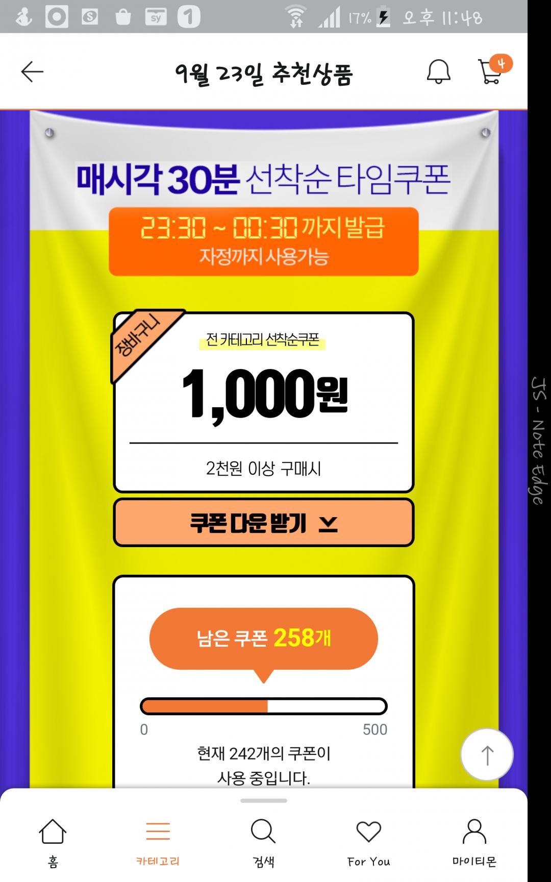 받고 쿠폰이 없어서 보니 사용순이네요.....지난쿠폰으로 넘어가버렸습니다. |