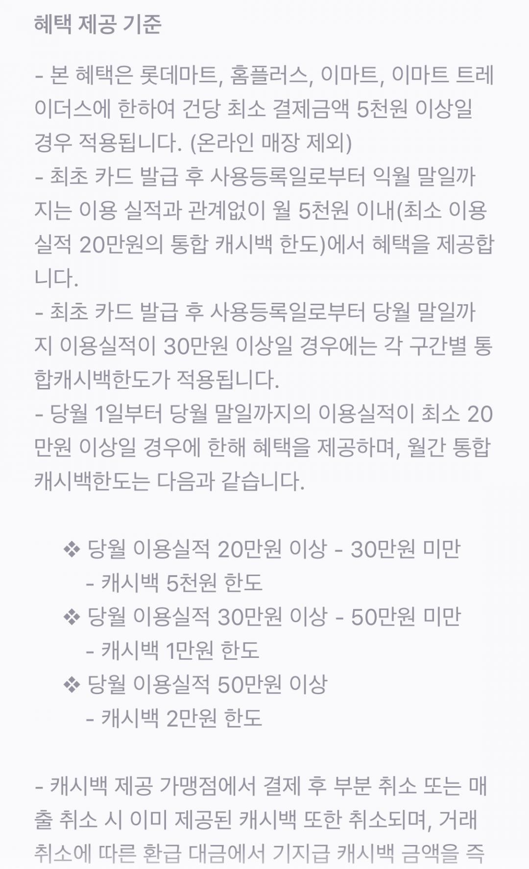 그래서 “전월실적없이 이번달 쓴 금액으로 혜택 받아요” 문구가 있는데~ ^^