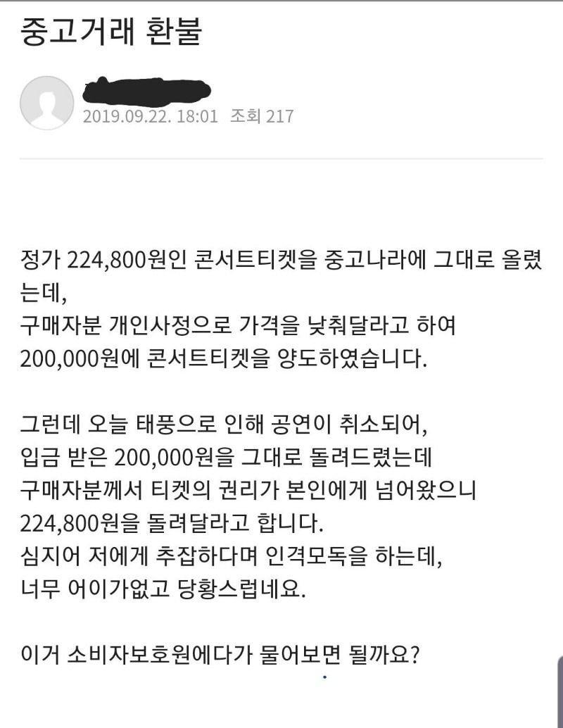 일단 특별법을 제외하고 법의 일반이론으로 구성하면 판매자에게 취소로 인한 기획사측의 환불이 되게 되어 구매자로 부터 받은 돈 20만원의 부당이득이 남게 됩니다(채무불이행으로 보기 보단 이편이 좀 더 설득력이 있음)