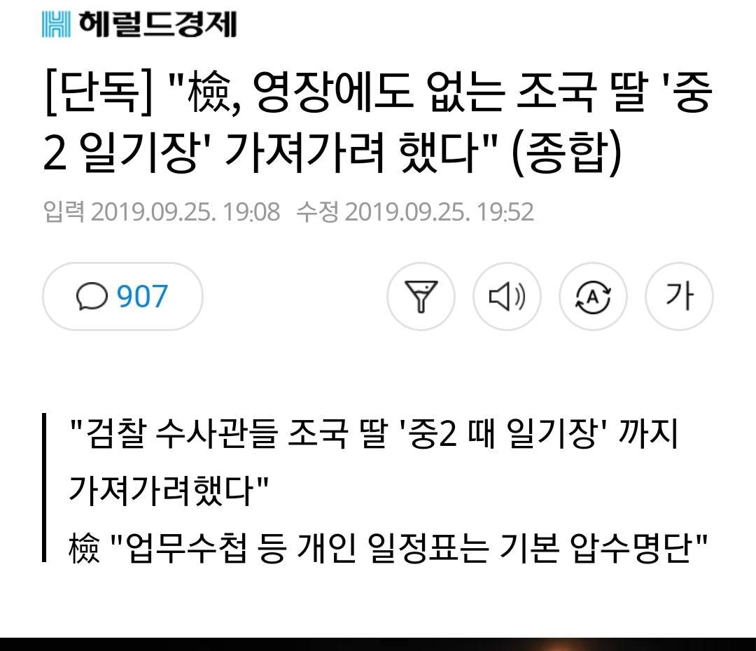 [단독] "檢, 영장에도 없는 조국 딸 '중2 일기장' 가져가려 했다" > 자유게시판