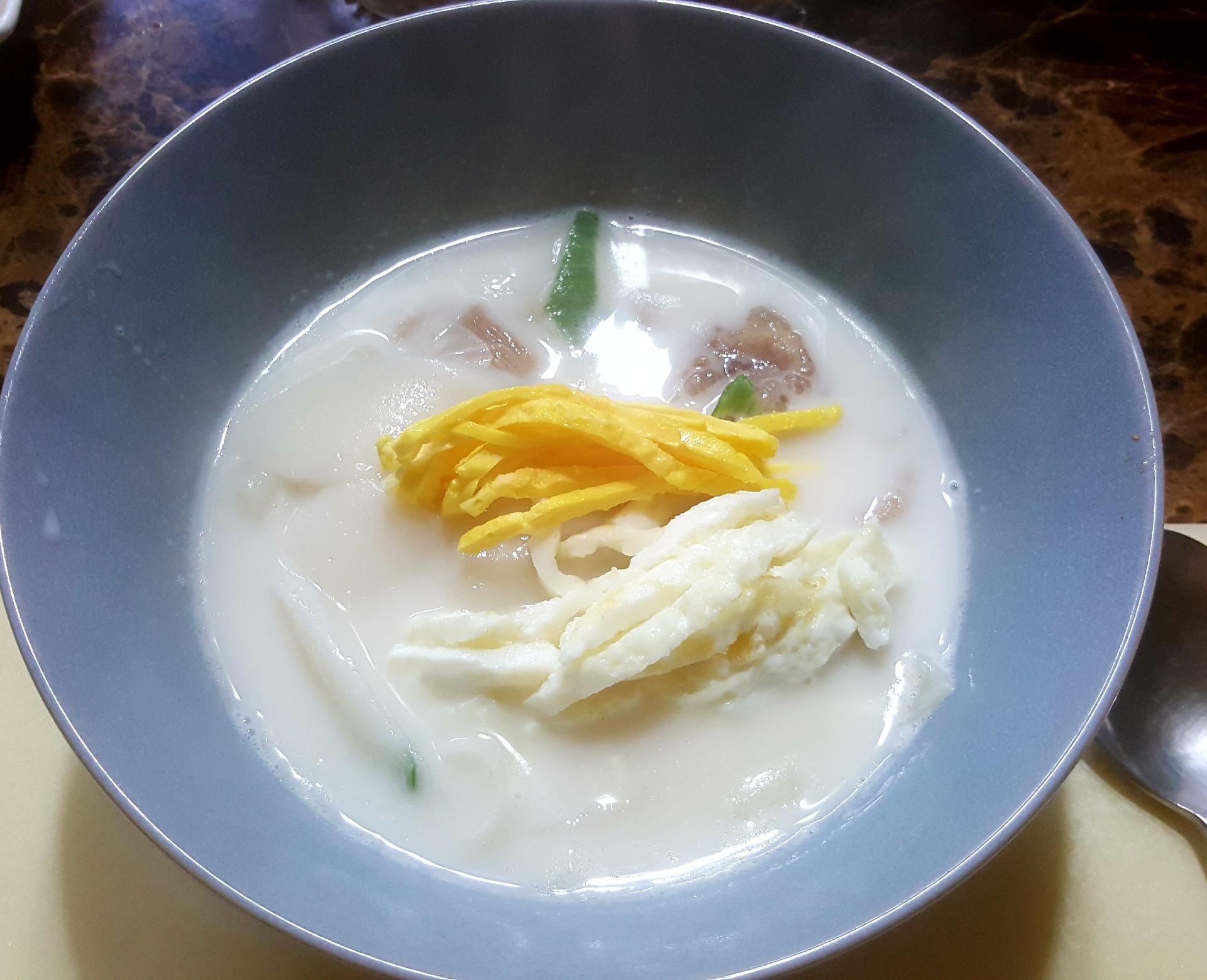 사골국에 떡이랑 만두넣어서 끓였네요.