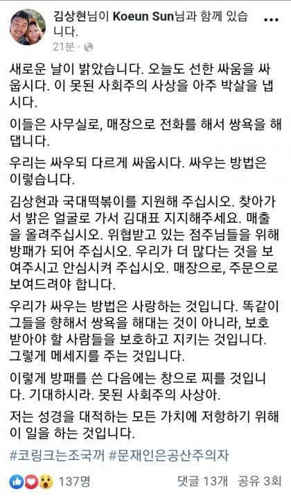 아무리 작은 프랜차이즈 업체대표라 해도 가맹점들을 생각해서 발언에 신중해야거늘..