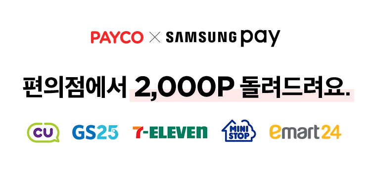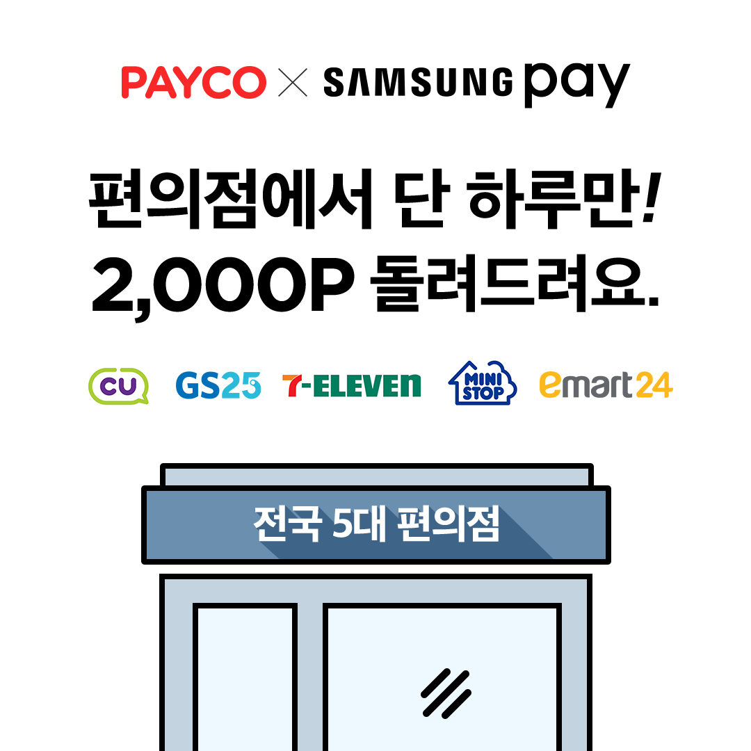 저녁 6시에서 9시까지 편의점에서 페이코로 2000원 결제하면 다시
