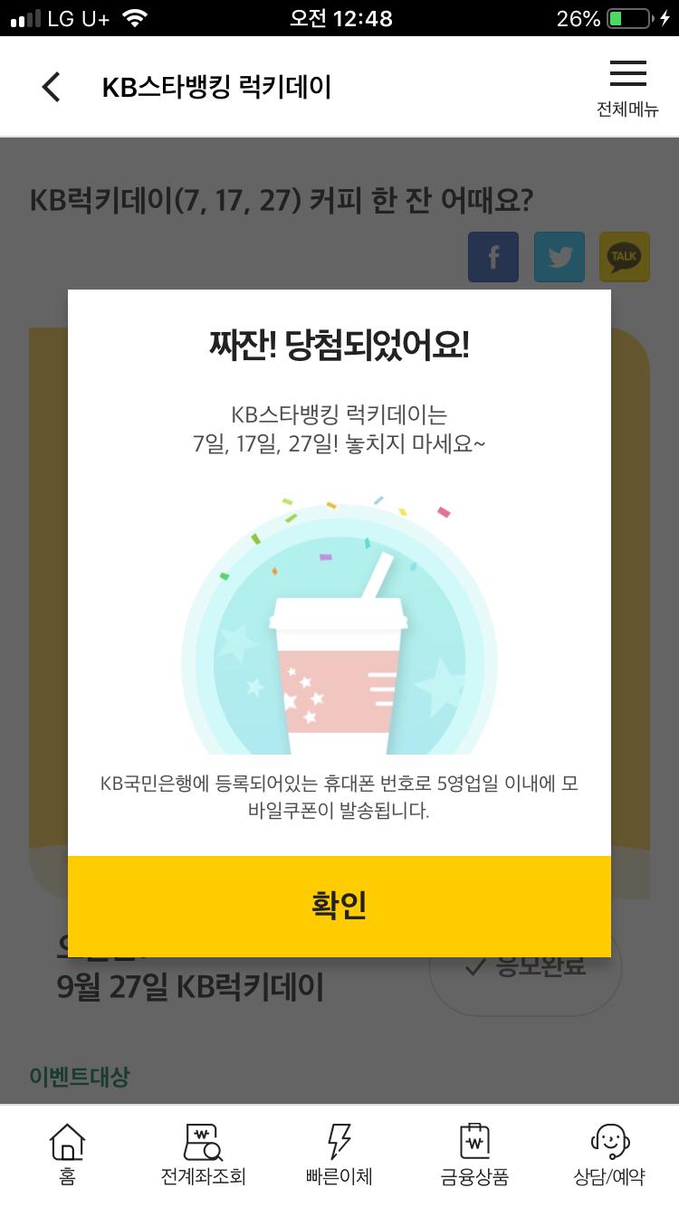 -KB스타뱅킹 로그인 > 이벤트 응모하기 > 실시간 당첨확인