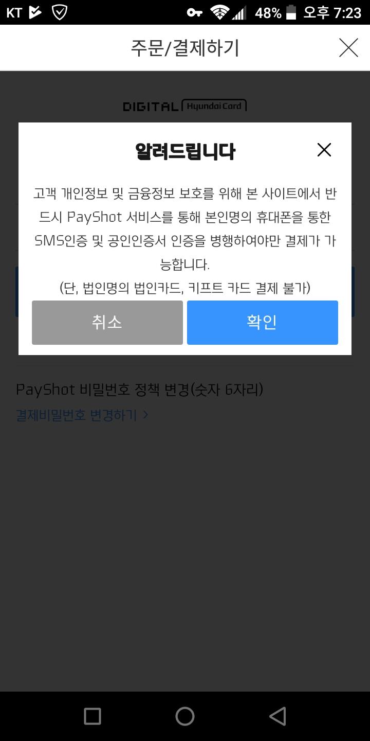 아이고 폰에 공인인증서 한번도 깔아본적이 없어 복잡할듯해 현대카드 결제는 포기해야겠네요/