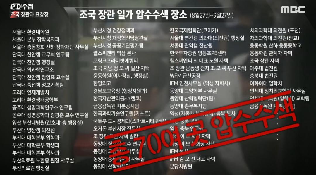 압수수색 장소 나열