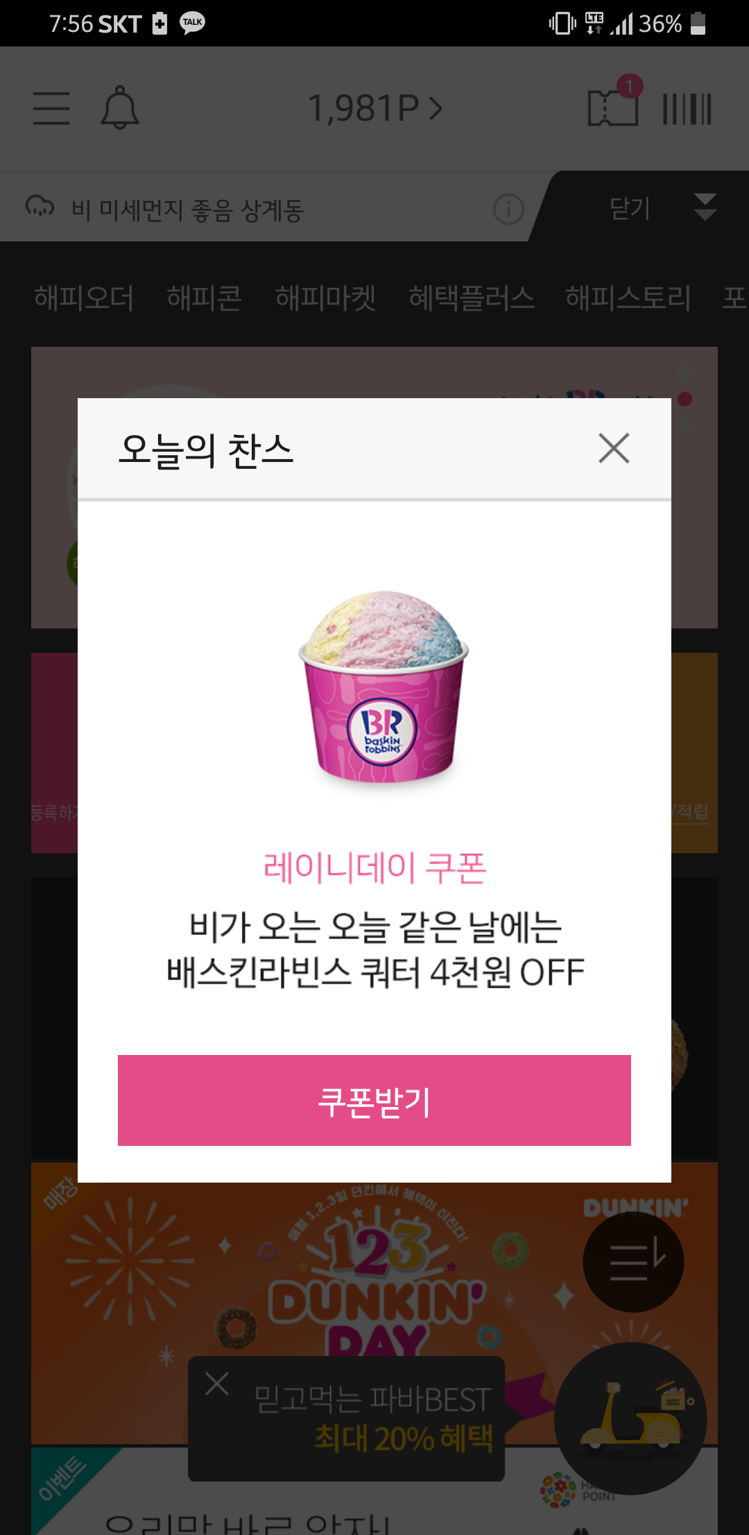해피포인크 레이니데이쿠폰도 바뀌었군요