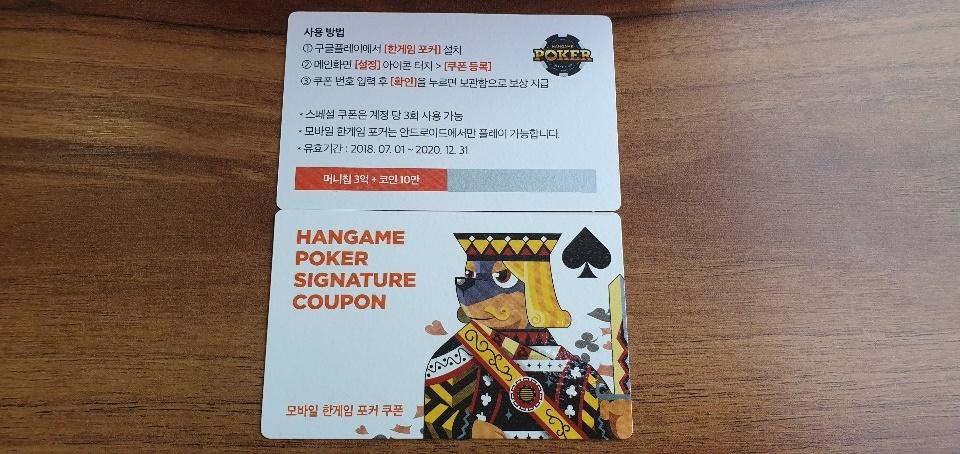 네 그렇습니다 모바일 한게임 포커 쿠폰 나눔입니다. 쿠폰은 총 4장이며 기한은 20년 13월 31일까지라 넉넉하며 묻고