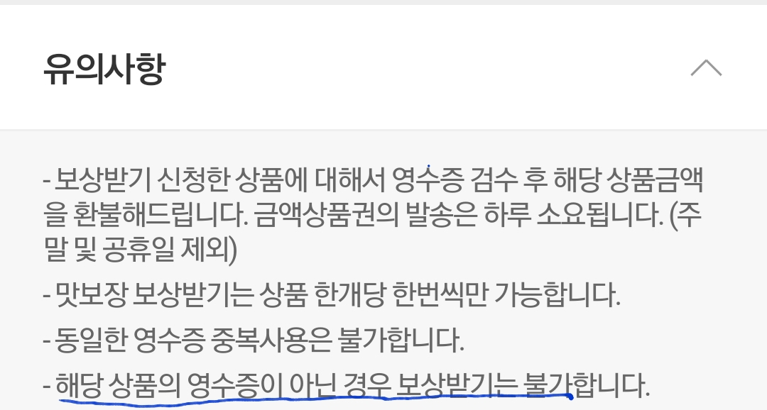 유의사항보면 해당상품 아니면 보상불가라네요.