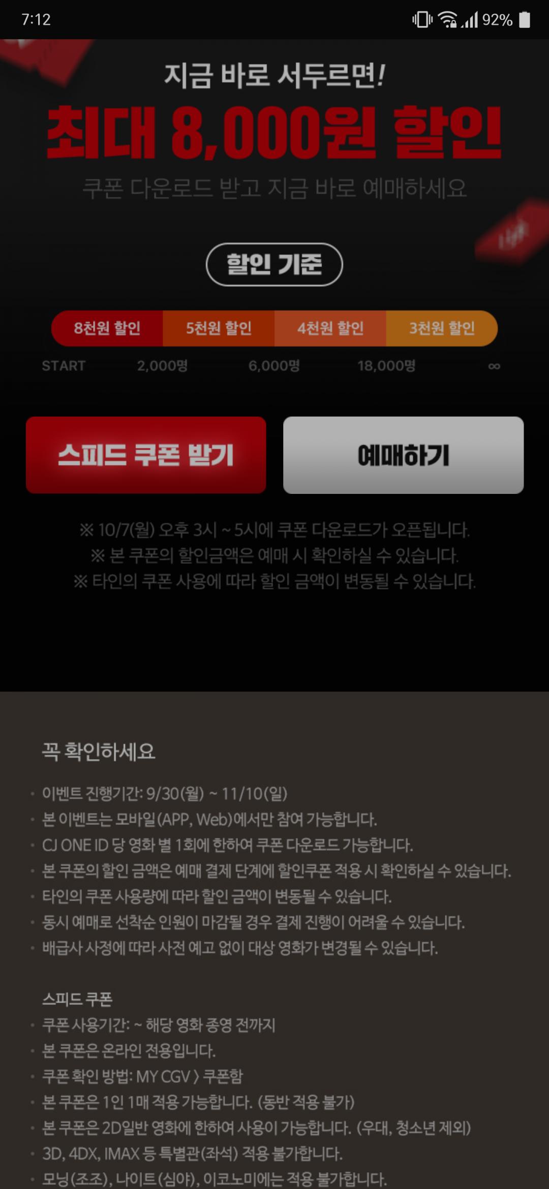 쿠폰받구 바로 예매해야되요