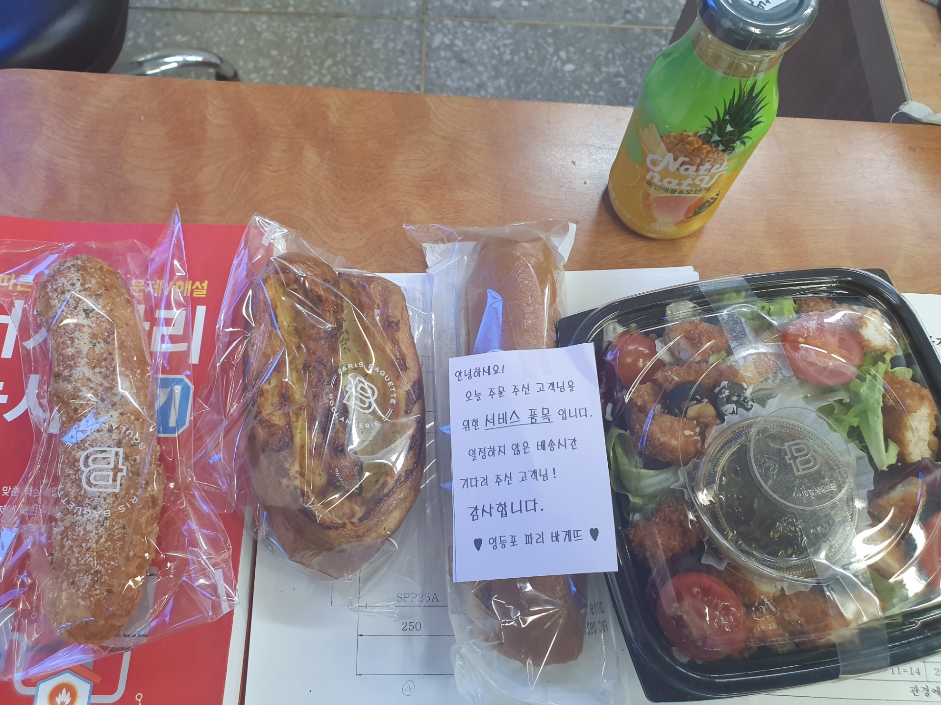 저희 지점은 맛보기 빵으로 큰빵에서 조금 잘라서 1, 2조각 서비스로 주는데 ㅠㅠ 부러워요^^ | ||