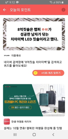 아까는 추가 퀴즈가 미백치약이였는데 박성훈도 있어서 포인트 또 받았네요 굿 ^^