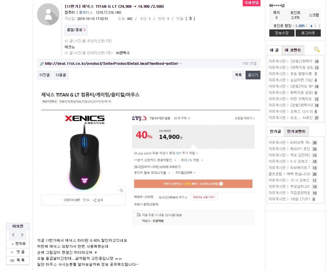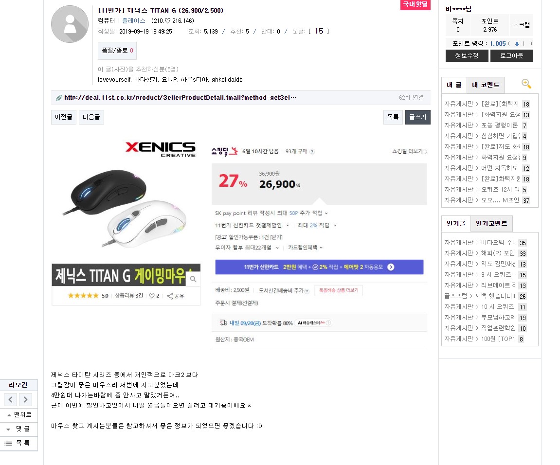 다른 글들은 저 마우스 판매글을 위한 물타기였다고 생각합니다.