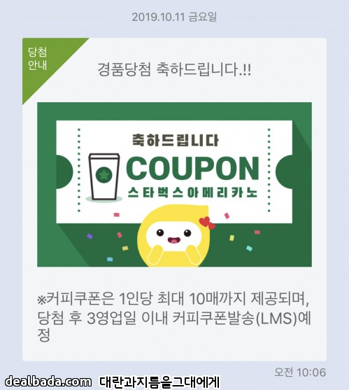 어제 꽝이라기대안했는데~저도 받았어요 | ||