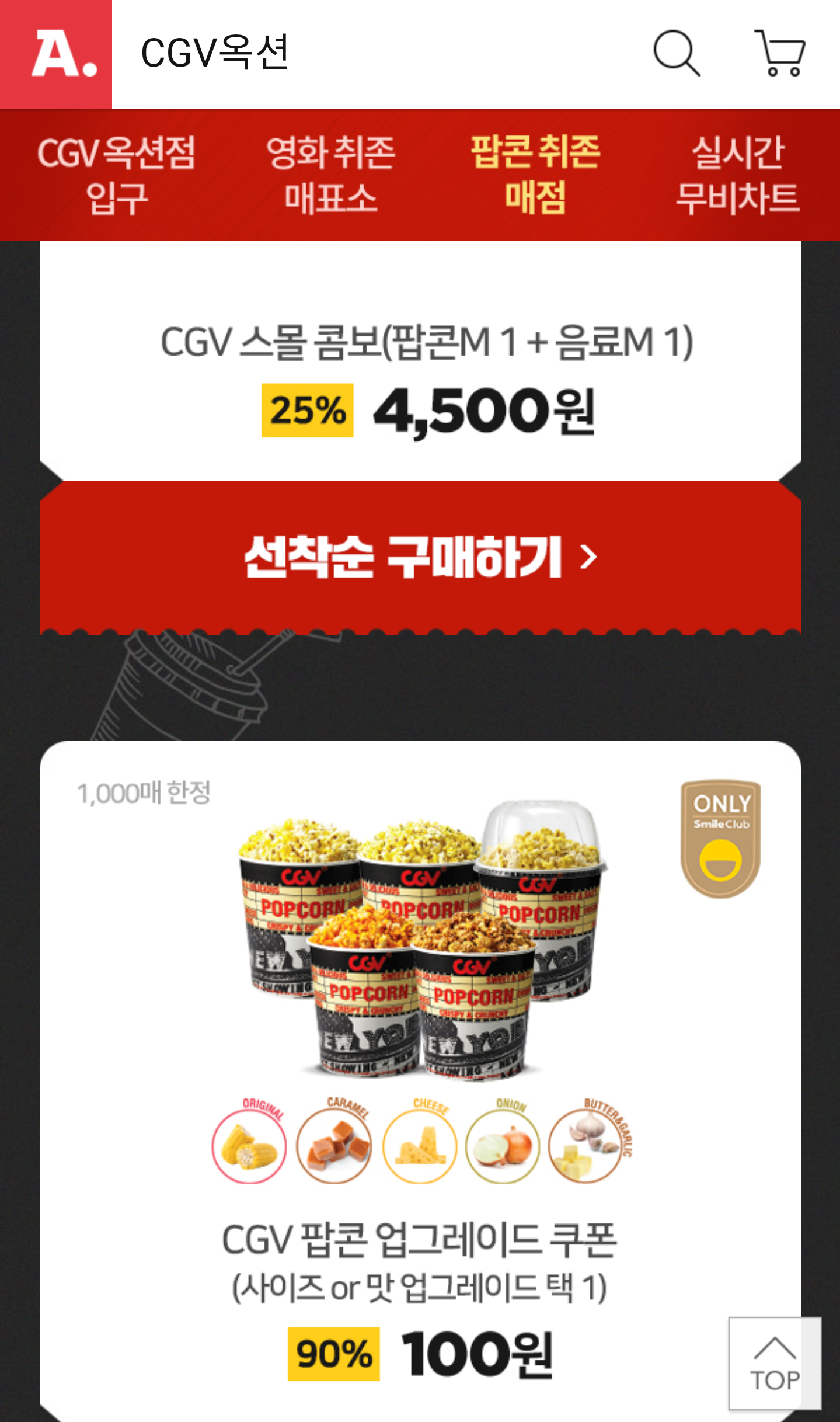 치즈맛(제가 젤 좋아해서..^^;) L사이즈 팝콘과 콜라를 5100원에 구매할 수 있습니다
