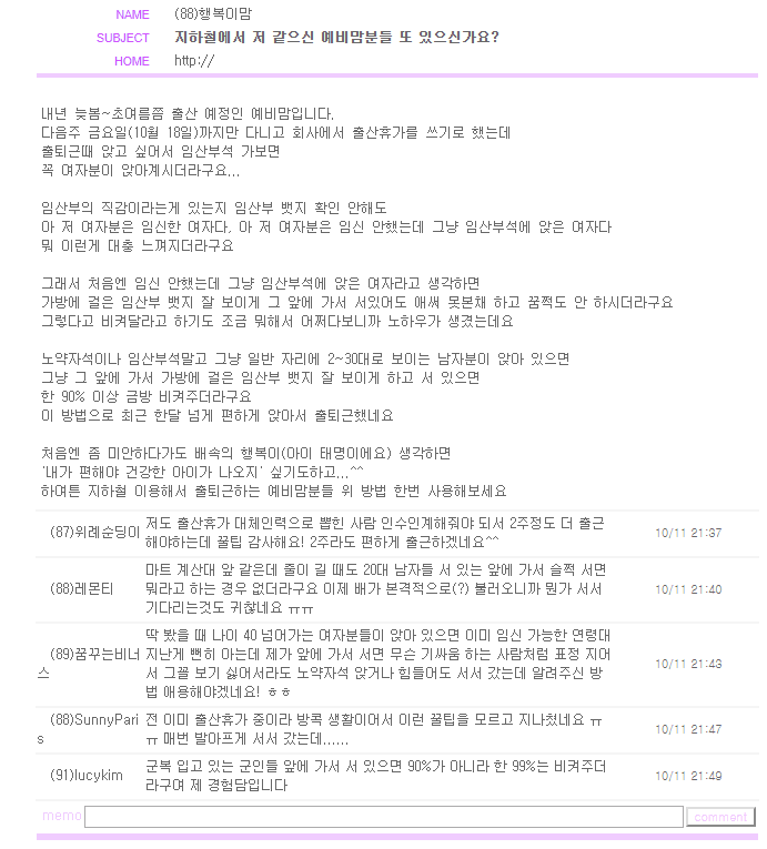 임산부 배려는 맞다고 해도 이런걸 꿀팁이라면서 공유하는건 비추해야죠. | ||