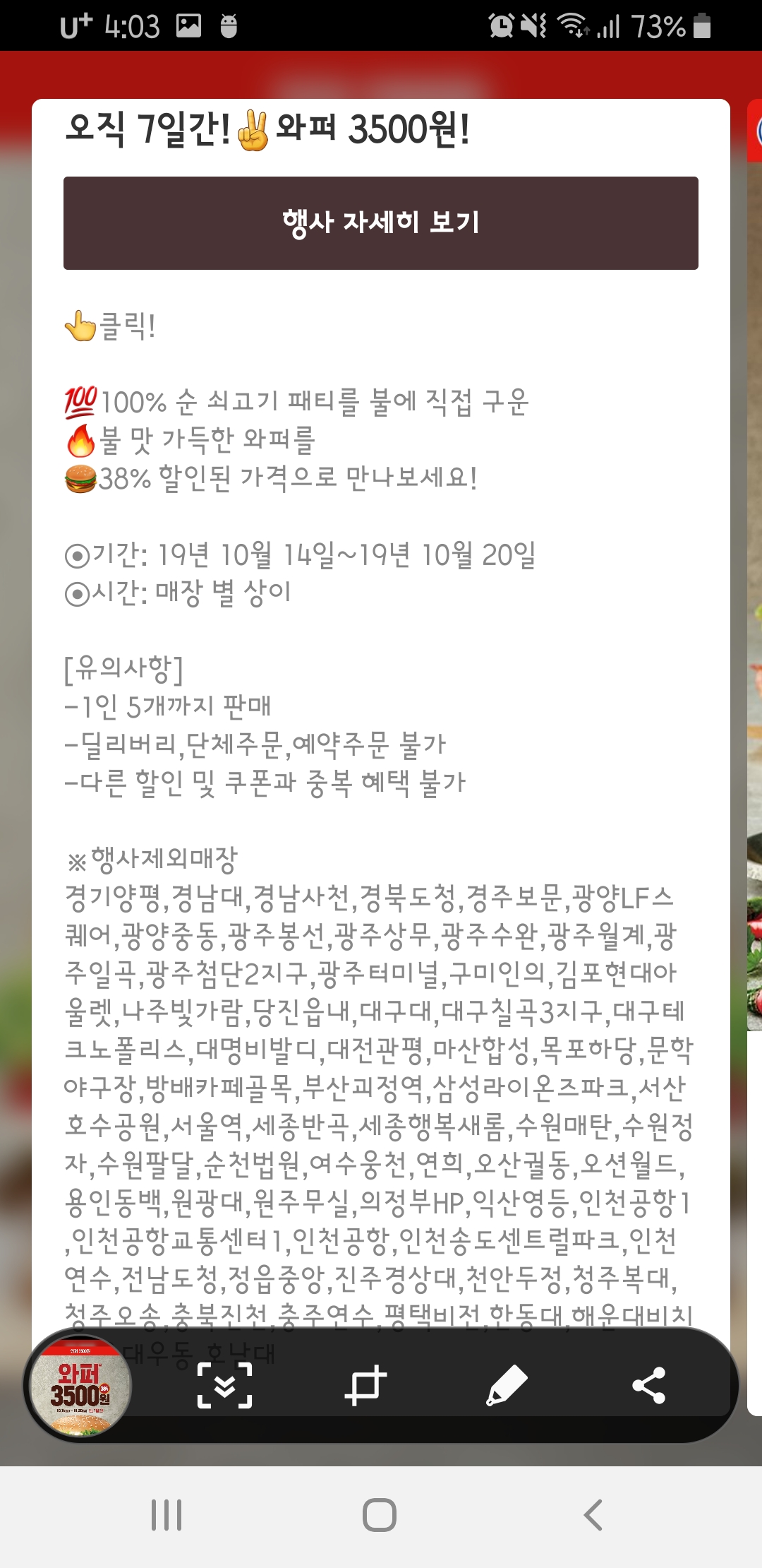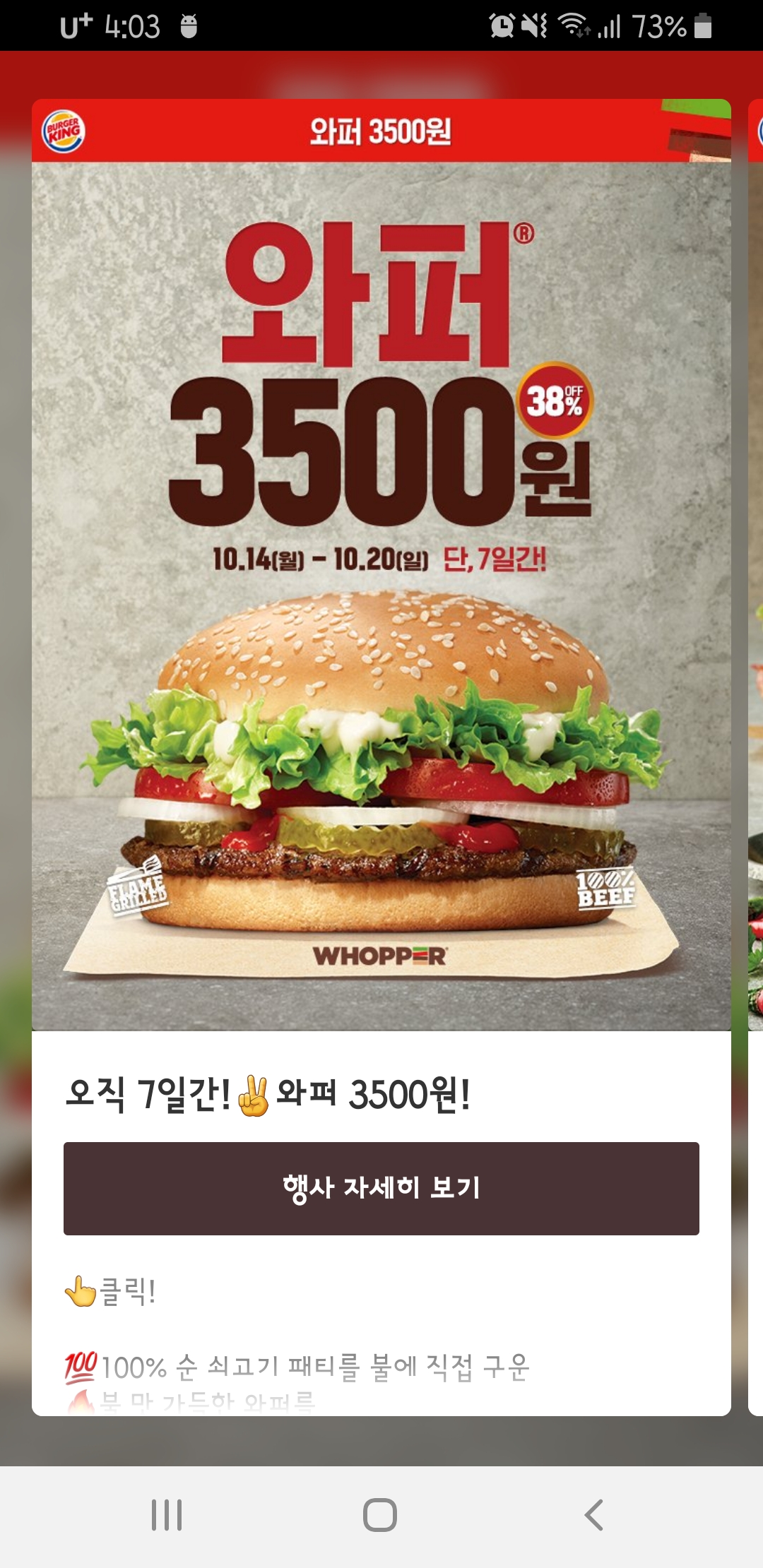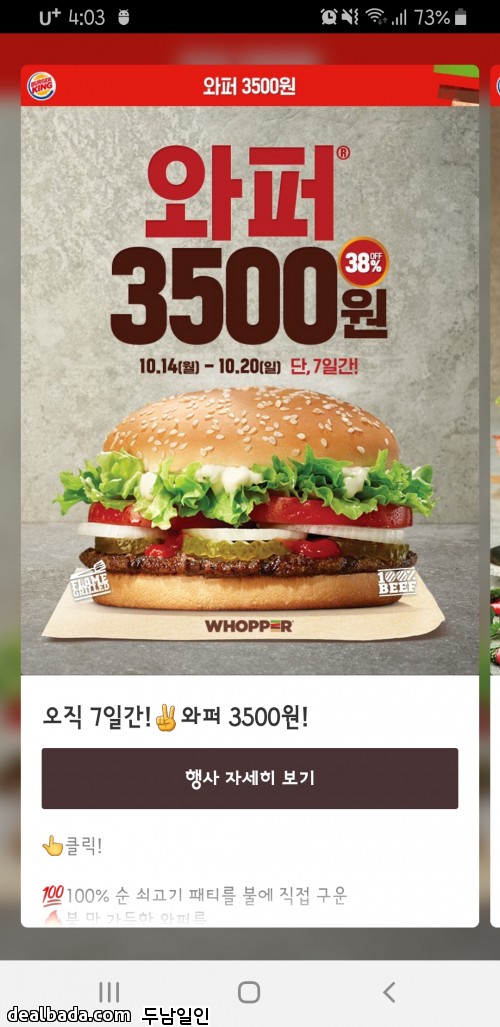 오케이캐쉬백에 와퍼 콤보 4천원 쿠폰있어여 | ||
