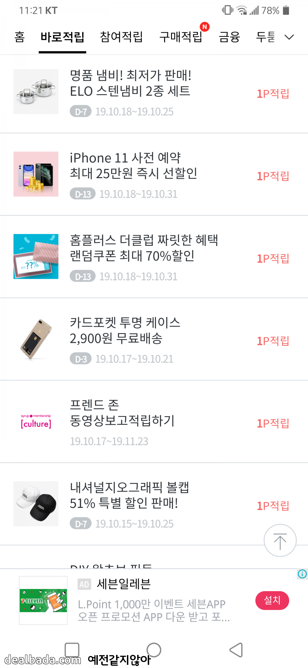 회사소개 개인정보처리방침 서비스이용약관 메일문의 Copyright © 딜바다닷컴 All rights reserved.