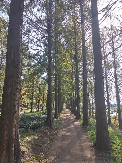 저는 옆으로 빠져 메타 세콰이어길로 갔죠. 여긴 전혀 다른 세상 사람 거의 없네요.