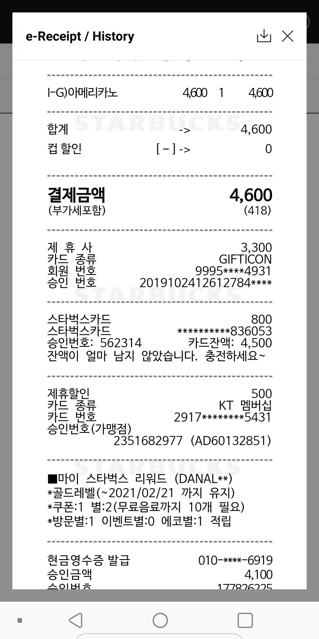 어디서 봤는데 기프티콘 사용해도 800원 이상 스벅카드만 결제하면 된다고 해서요^^ |