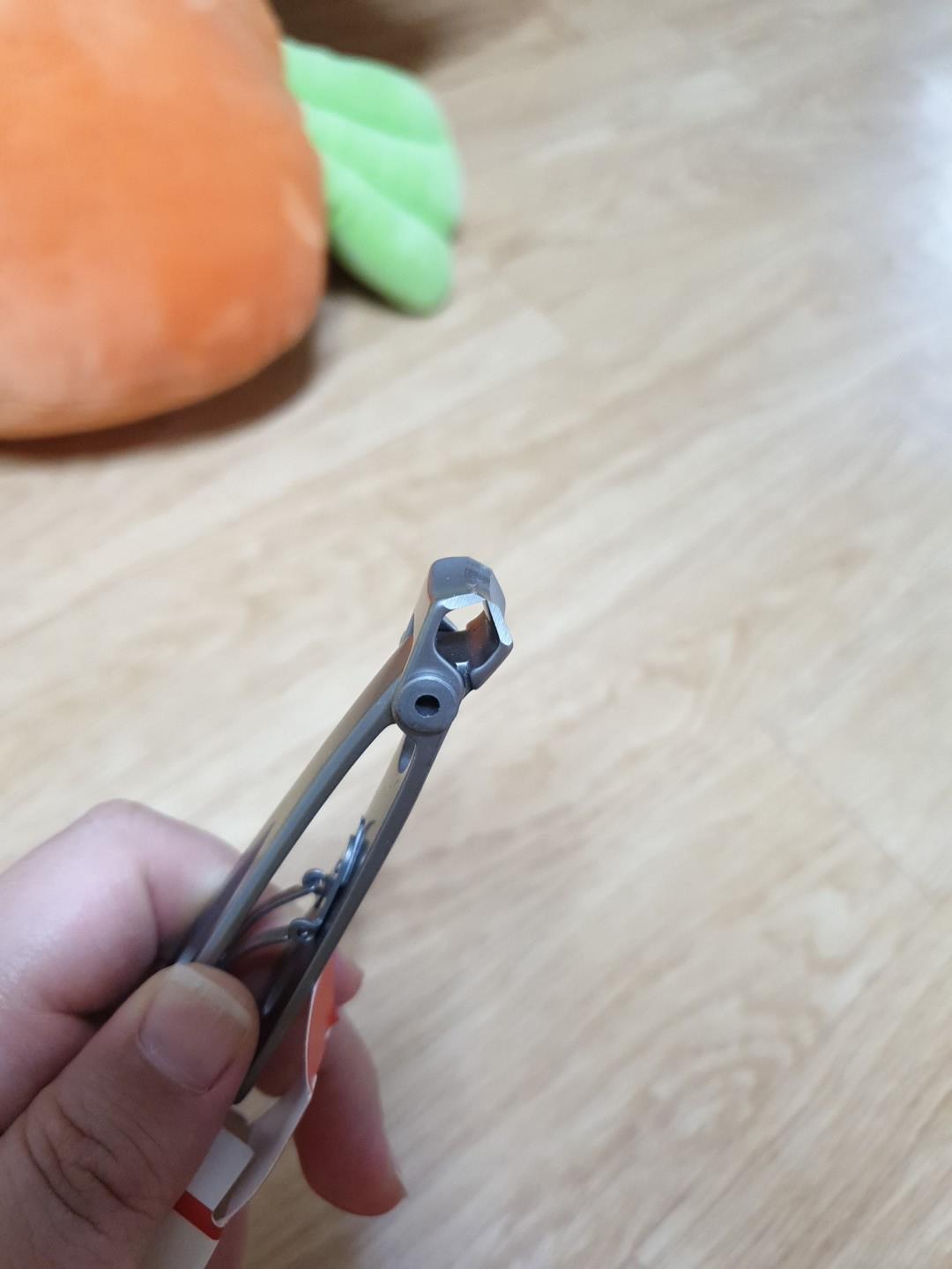 아주 두껍고 튼튼해요 저렇게 닫혀있다가 벌리고 뒤에 지렛대를 반대쪽으로 펴주면 발톱깍이가 되서 또각또각 깎입니다.