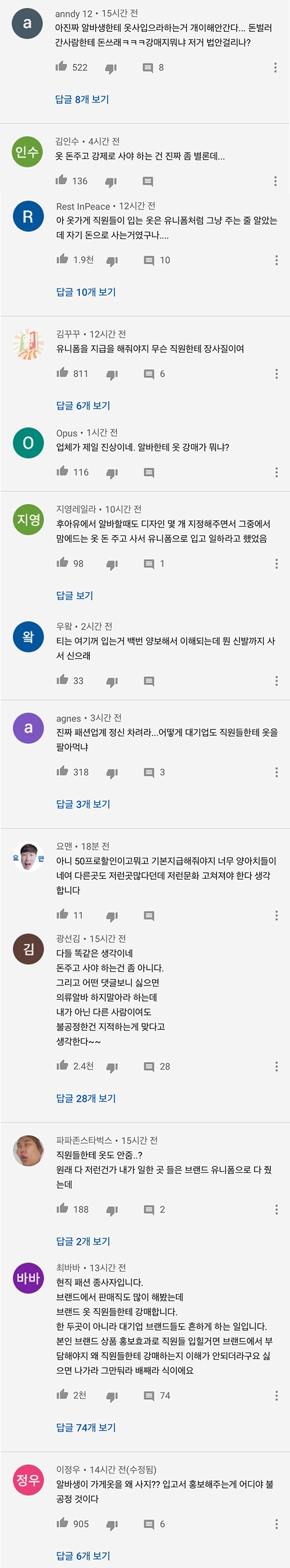 일단 근무시간에 매일 입는다고 치면 결국 일년도 안되서 낡아버릴텐데 저걸 강매하네요.