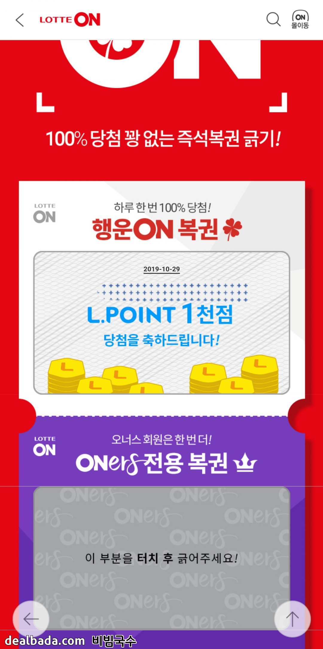 글 읽고 바로 긁으러 가니, 저도 1천점 당첨되었습니다. 감사합니다.^^ |