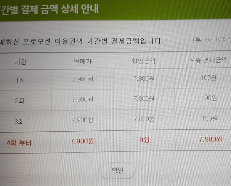 확인안했으면 큰일날뻔 ㅠ 1개월 100원짜리 신청됬었네요;;