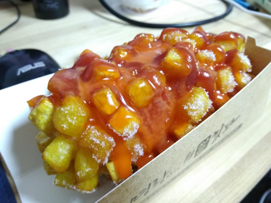 고구마와 소스가 발린 부분만 맛있고 나머지는