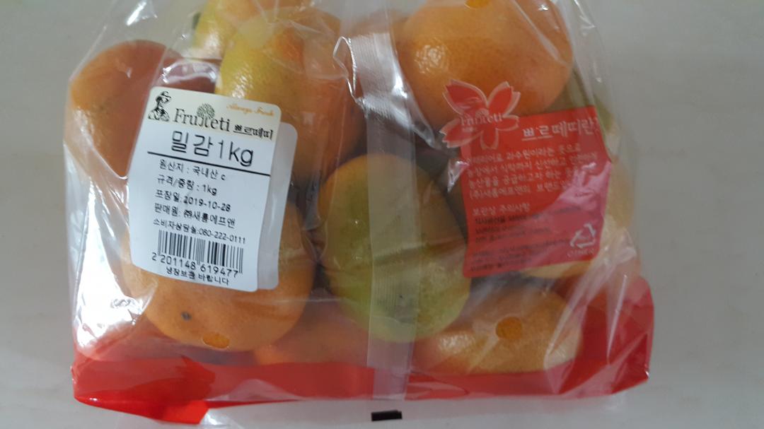 반값귤이라 적혀있지 않았어요..플라스틱용기에 담긴 것도 할인되긴한데 500g에 2900원이니 봉지 담긴게 더 저렴하더라구요.^^ |