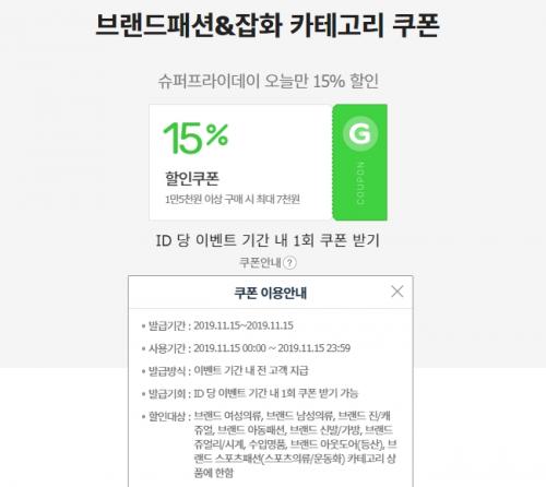 오늘 지마켓 브랜드패션/잡화 카테고리 15%
