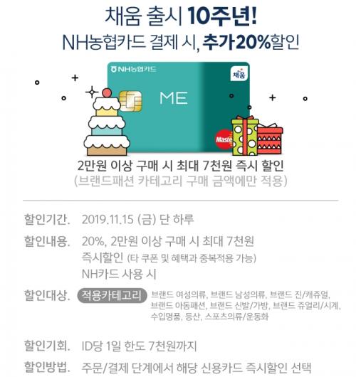 농협카드 20% 즉시 할인 (2만 이상 최대 7천 할인)