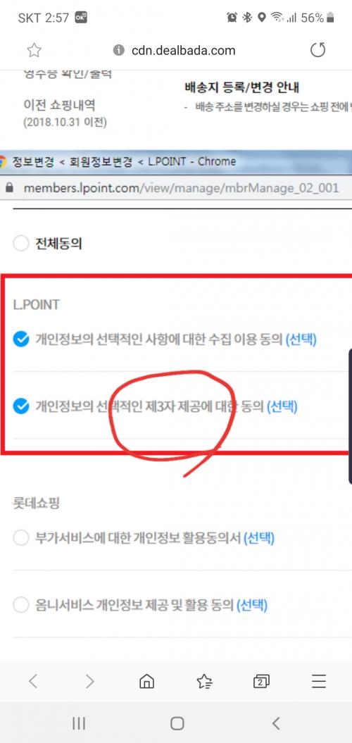 롯데쇼핑은 상관없고 엘포인트 두가지에 모두 동의를 해야한다네요 | ||