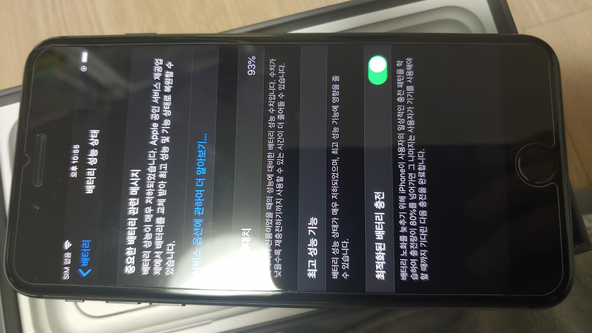 사진 몇 장 찍어봤어요.. 배터리 용량 땜에 잠깐 제가 쓰는 아이폰 계정 로그인만 해봤습니다. 배터리 성능 93% 나오는게 맞습니다.