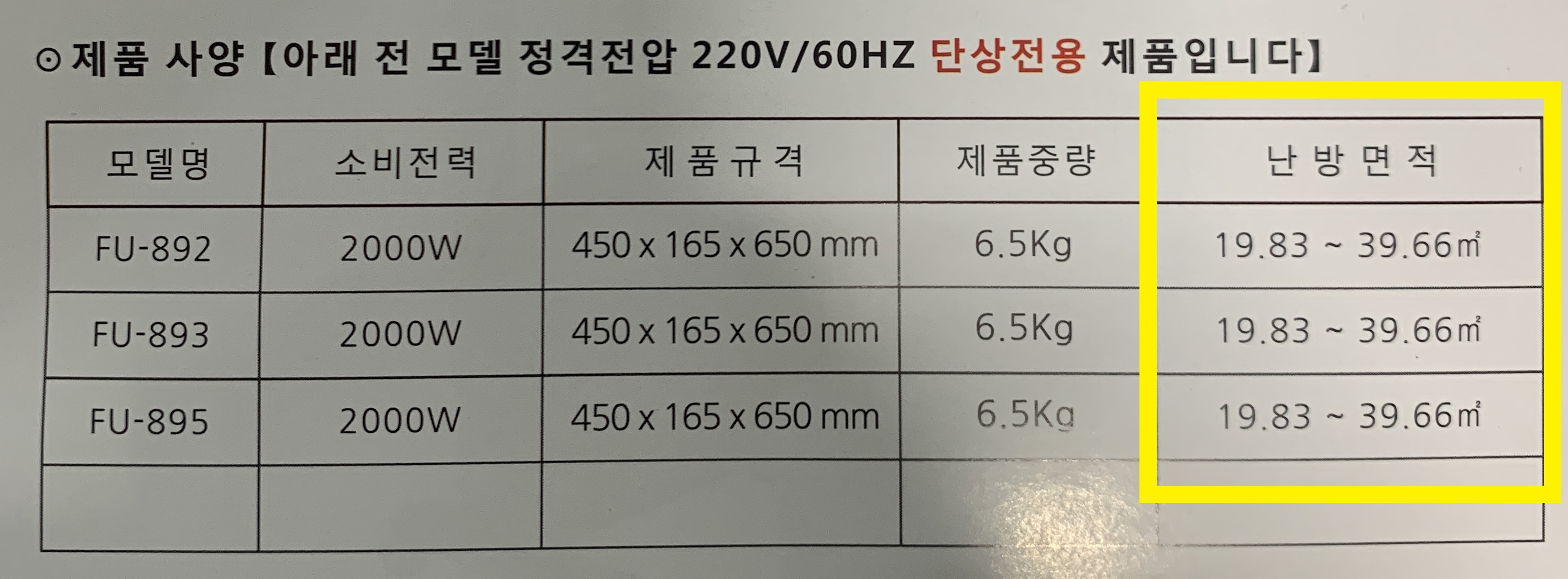 저 같이 한정된 공간을 난방하기에는 용량이 모자랍니다.