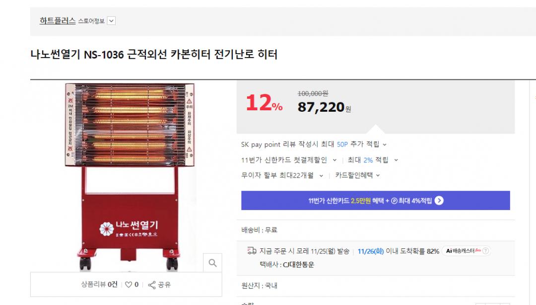사무실 난방을 위해서 근적외선 히터를 한 개 사봤습니다.