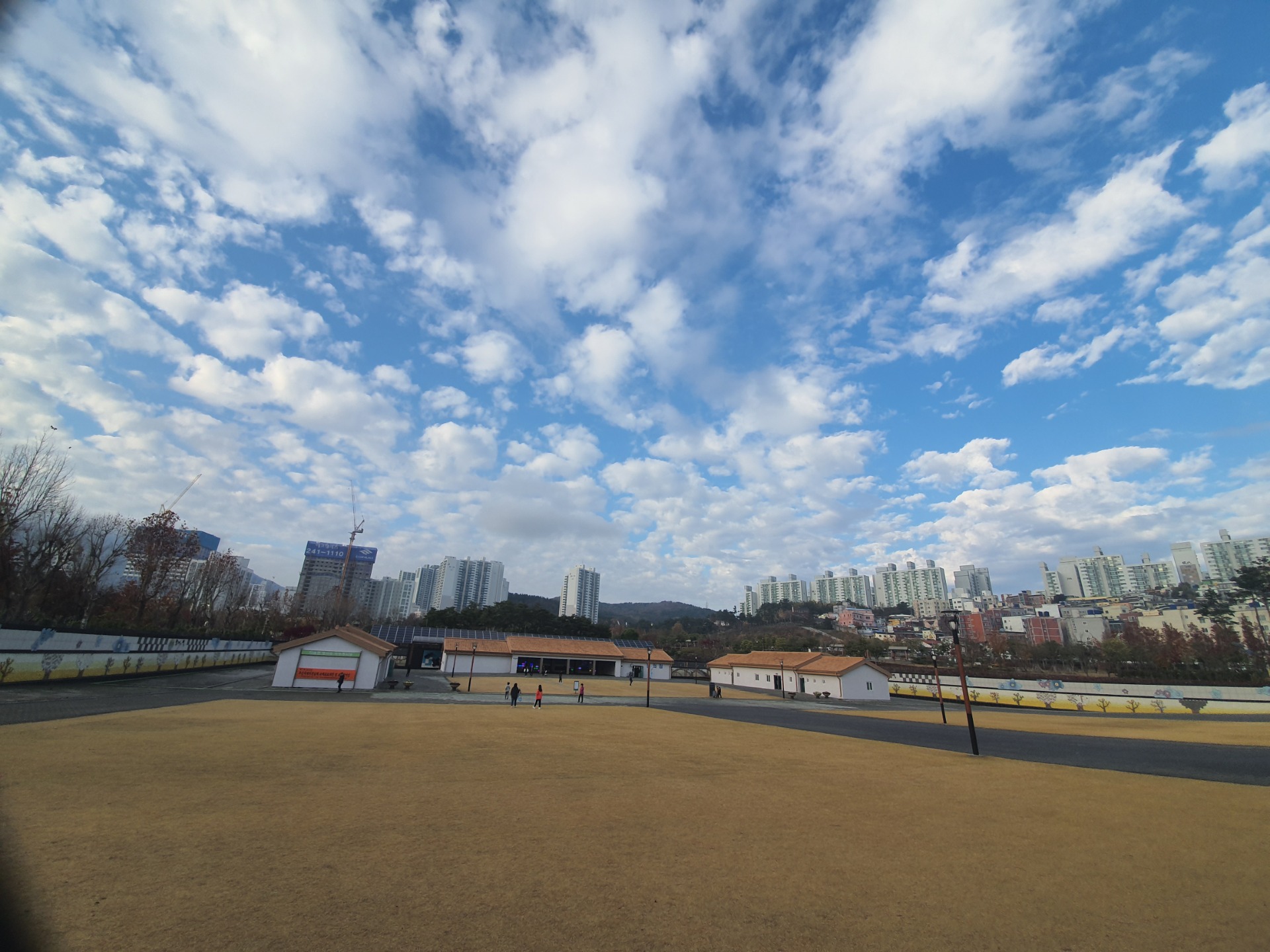 공원에 도착했을땐 먹구름이 많았는데 점점 구름이 걷혀서 하늘이 파랗게 나왔네요. |