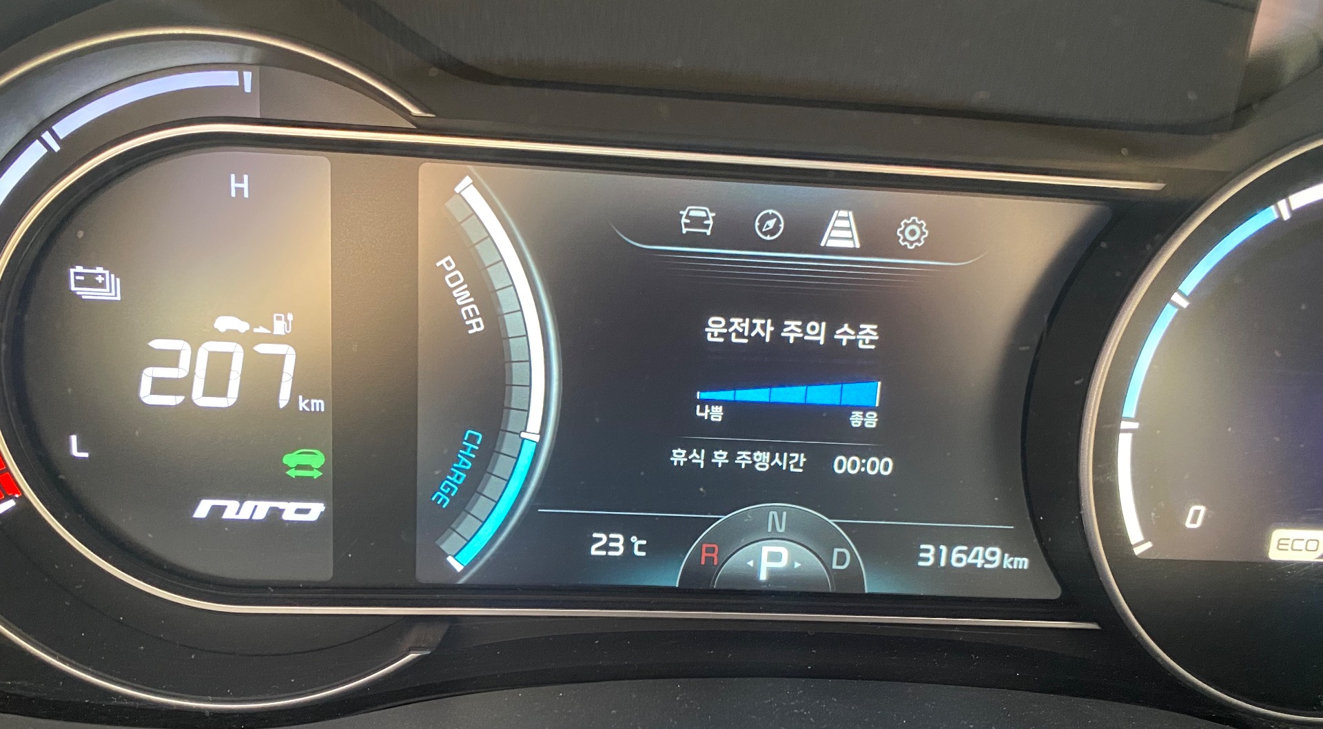 저는 니로하이브리드 빌렸었는데요. 4인 일반모드 주행연비가 리터당 22~23정도 나오더라구요. 연비정말 좋더라구요. 다음에 기회되면 전기차도 한번 타보고 싶을정도 였어요. |