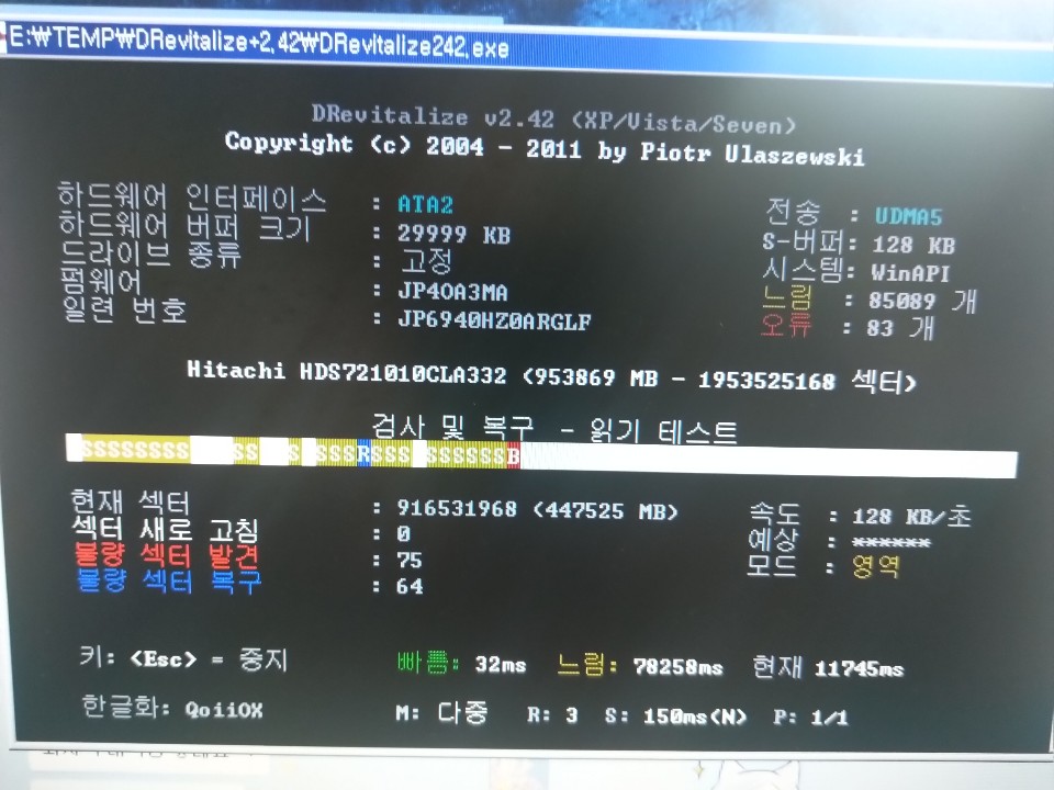 일단 배드섹터 확정후 사진 등 중요 데이터 복사 백업하려는데...