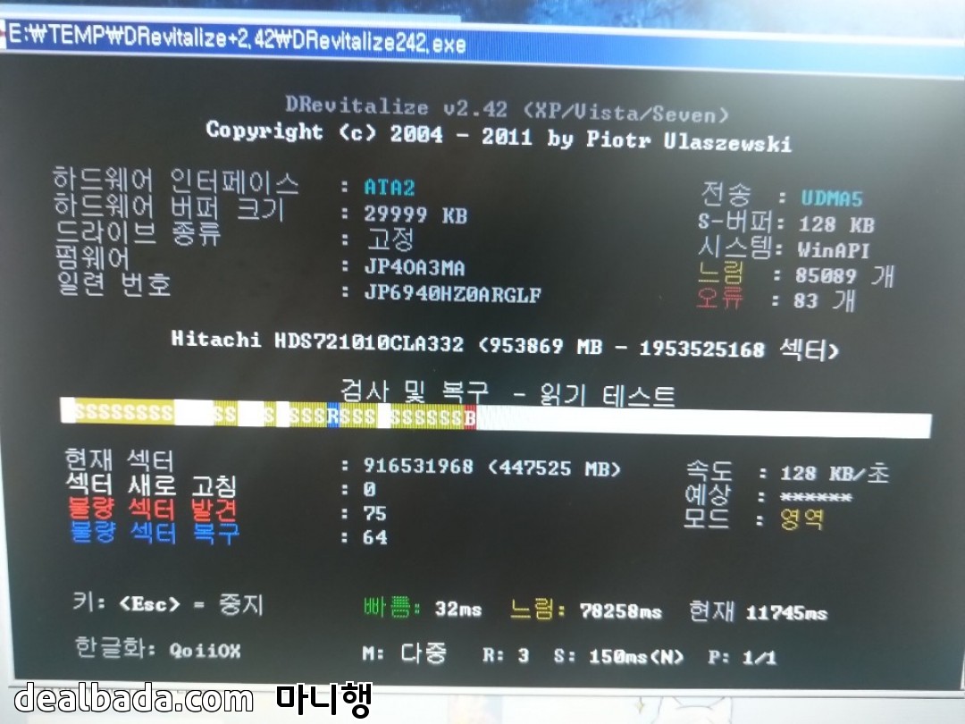 불량 섹터 복구 건수가 발견 건수와 일치하지 않으면 물리적 고장이라고 하네요 ㅠ