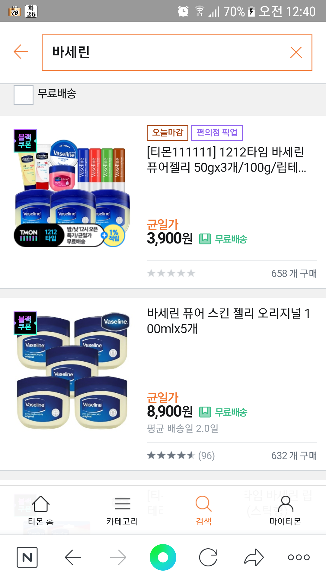쿠폰적용하니 8010원에 바세린5개 구성이예요.